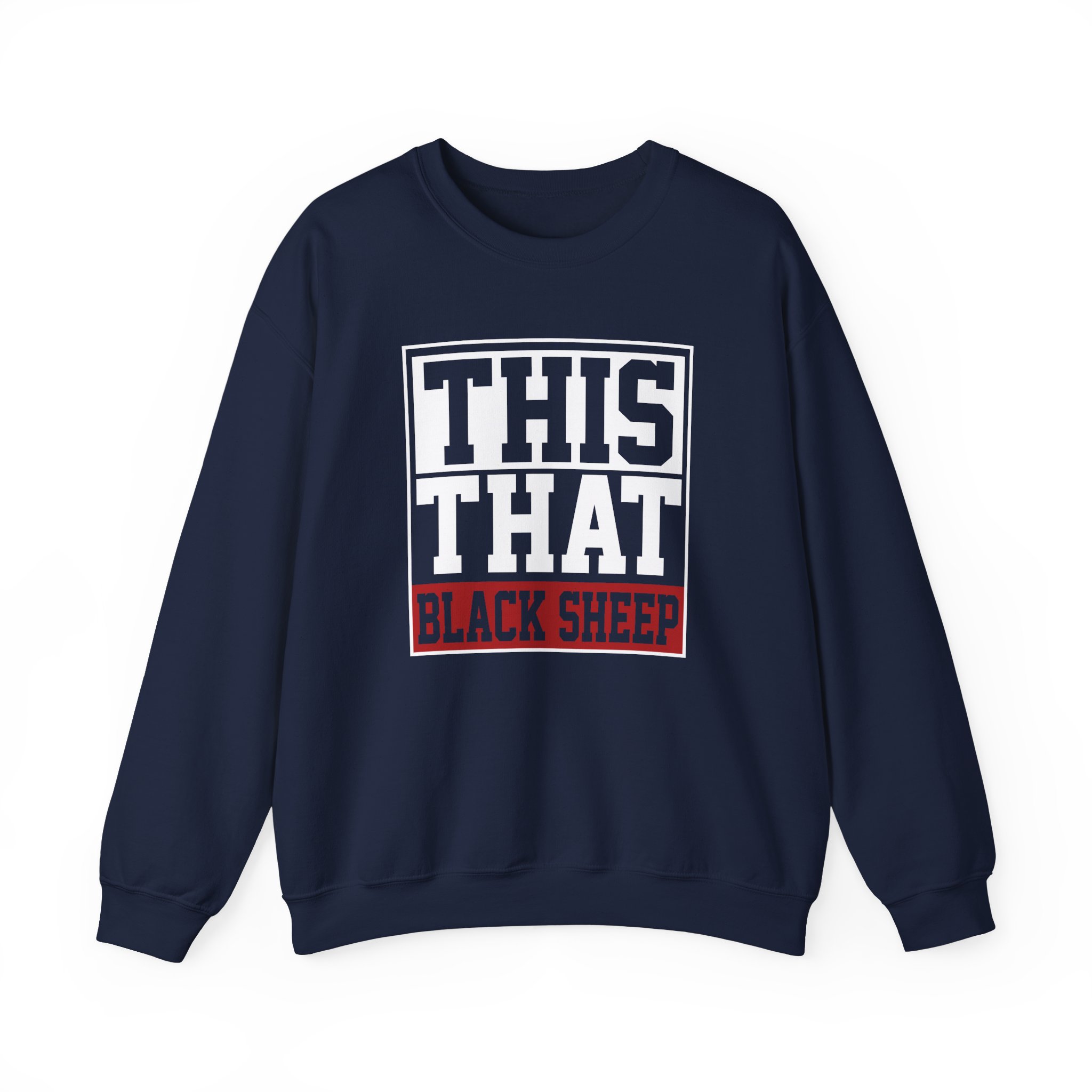 Ideal for any situation, a Black Sheep This That unisex heavy blend crewneck sweatshirt is pure comfort. These garments are made from polyester and cotton. This combination helps designs come out looking fresh and beautiful. The collar is ribbed knit, so it retains its shape even after washing. There are no itchy side seams on these sweaters.