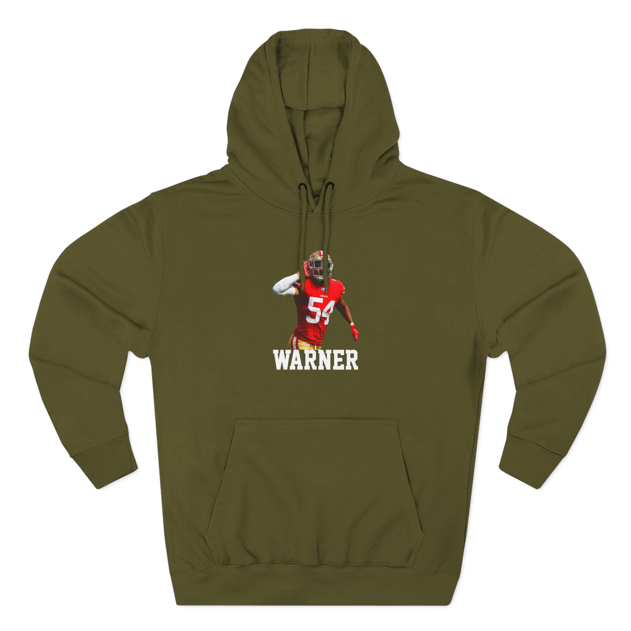 Beat the cold with this Fred Warner premium pullover hoodie that’s just the right layer of warm and cozy. Made with three-panel fleece lining, this pullover is double stitched for durability and roomy. Pick one in your favorite color to match your style.