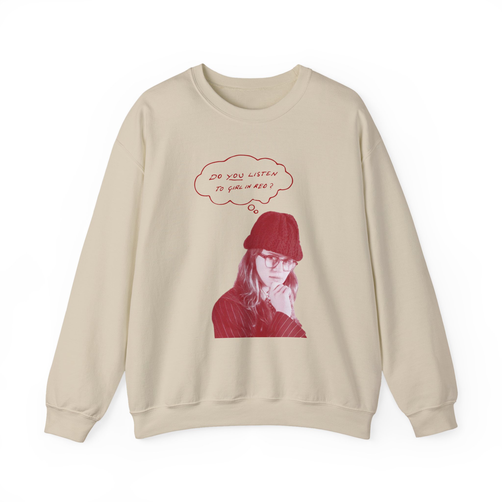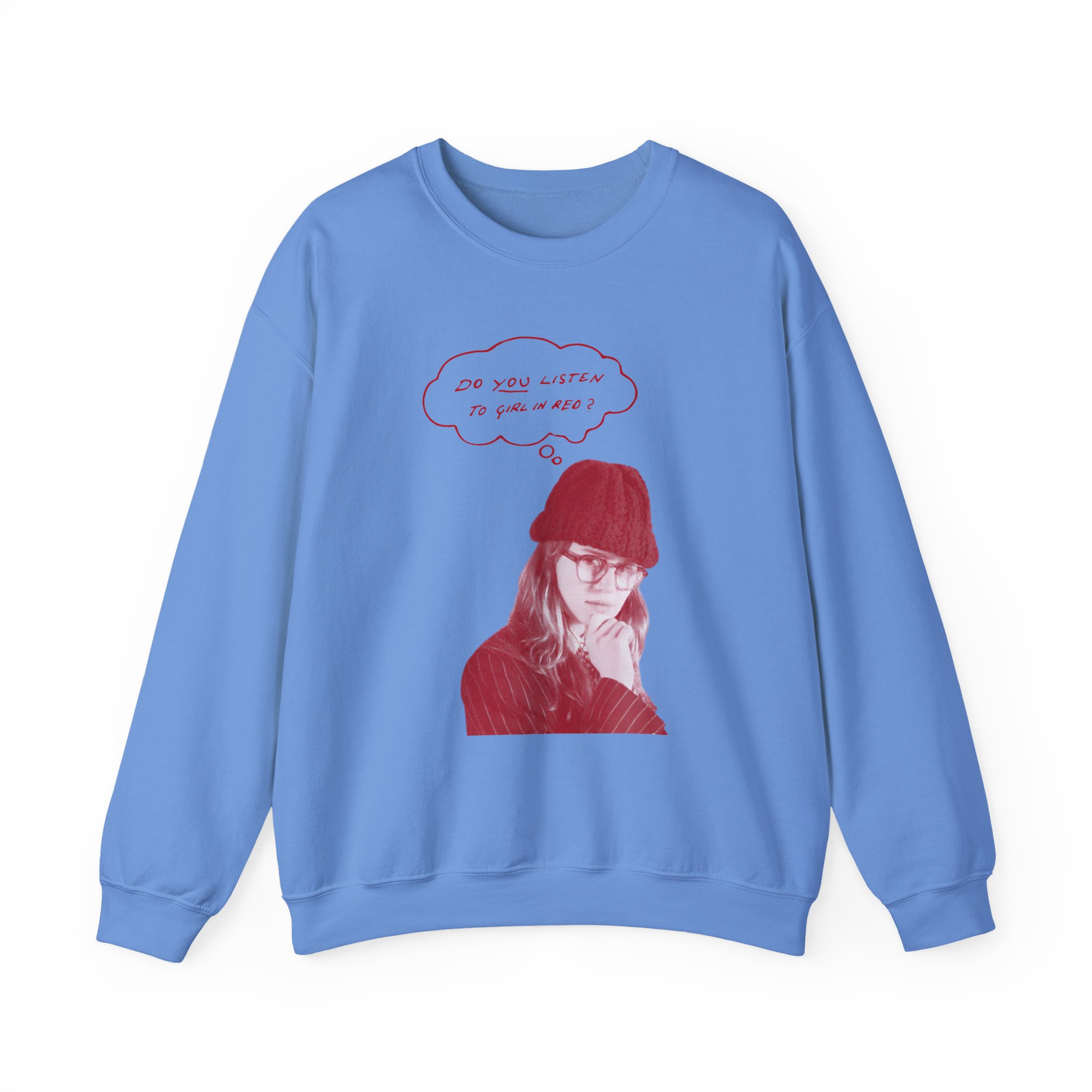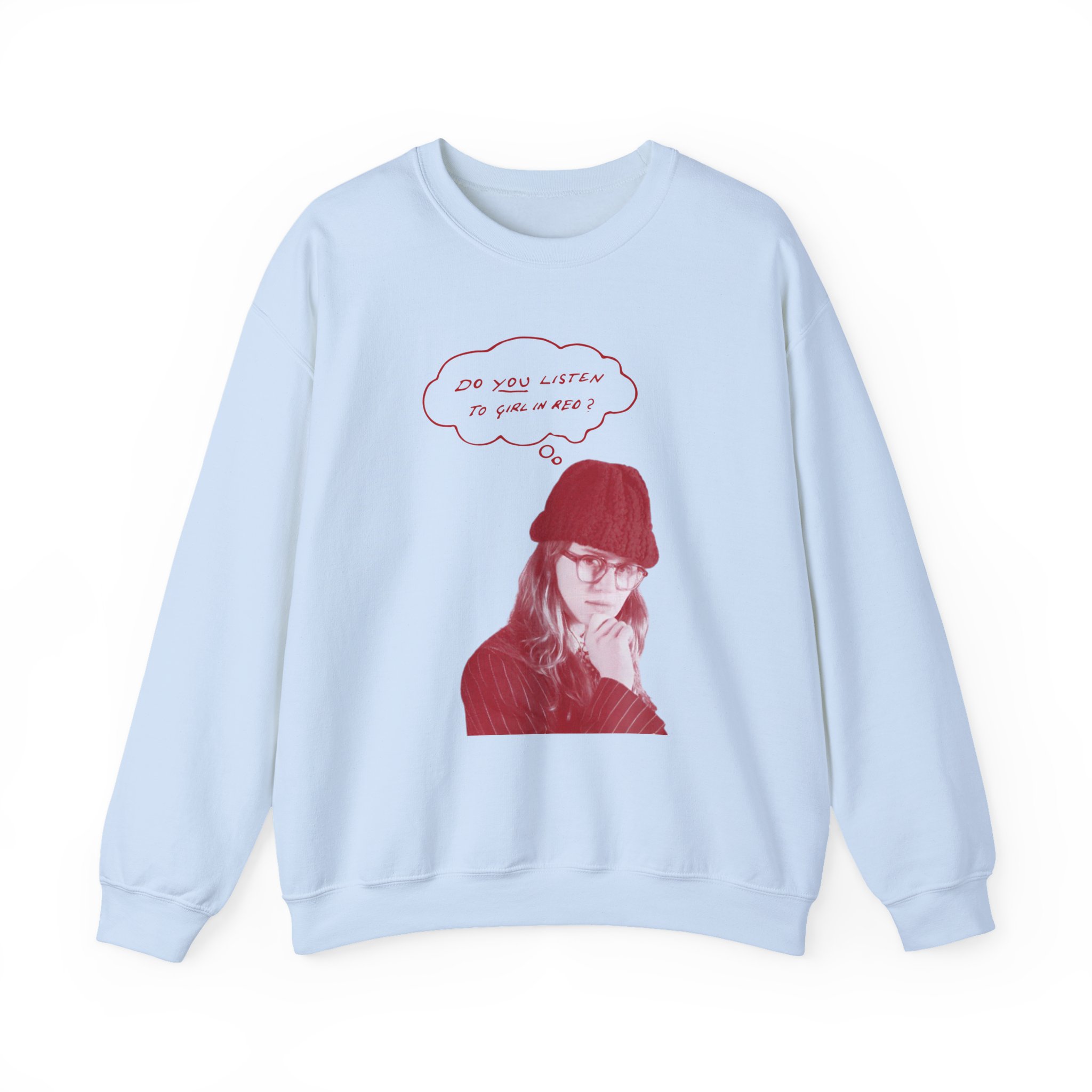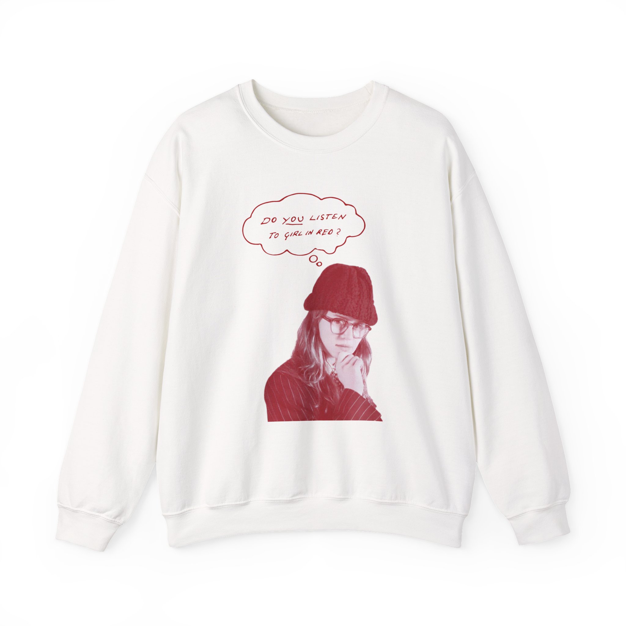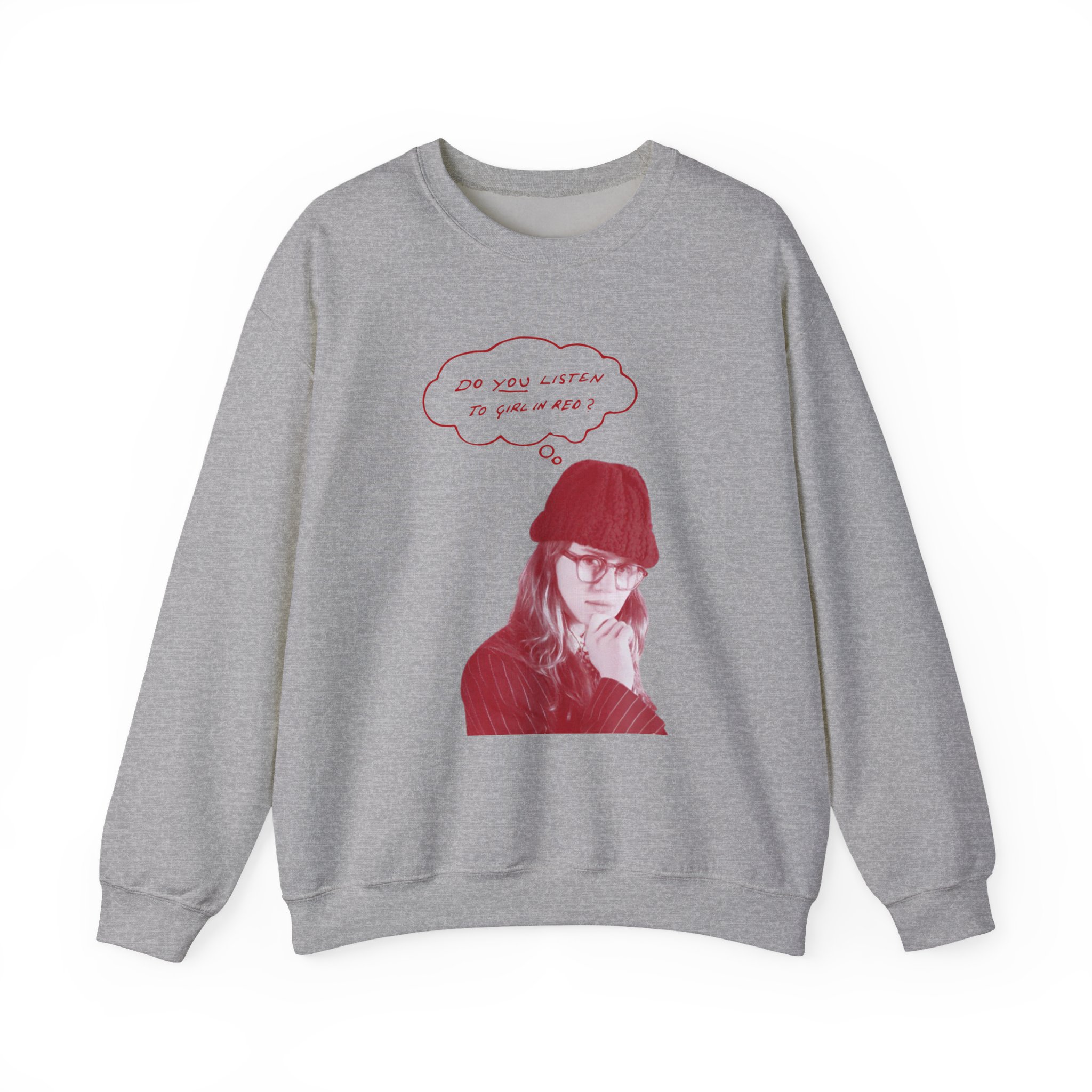 Ideal for any situation, a Girl in Red Do You Listen? unisex heavy blend crewneck sweatshirt is pure comfort. These garments are made from polyester and cotton. This combination helps designs come out looking fresh and beautiful. The collar is ribbed knit, so it retains its shape even after washing. There are no itchy side seams on these sweaters.