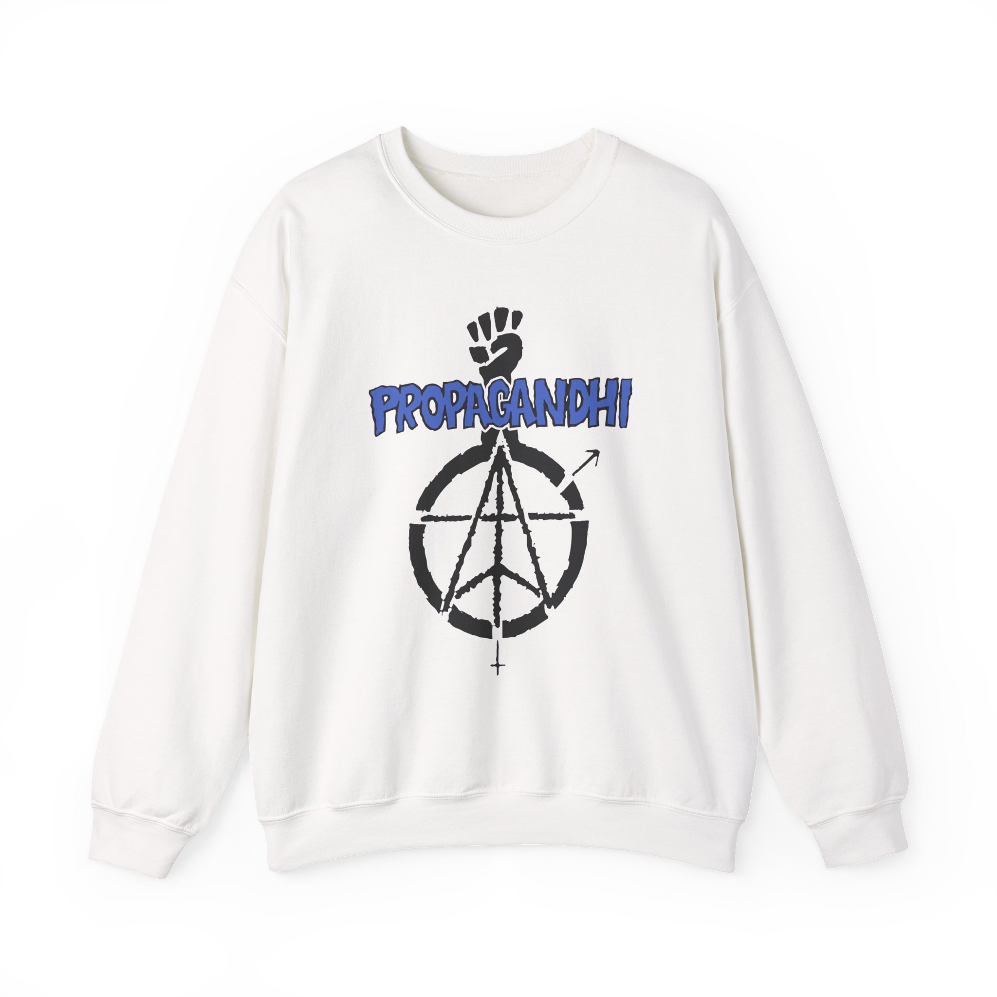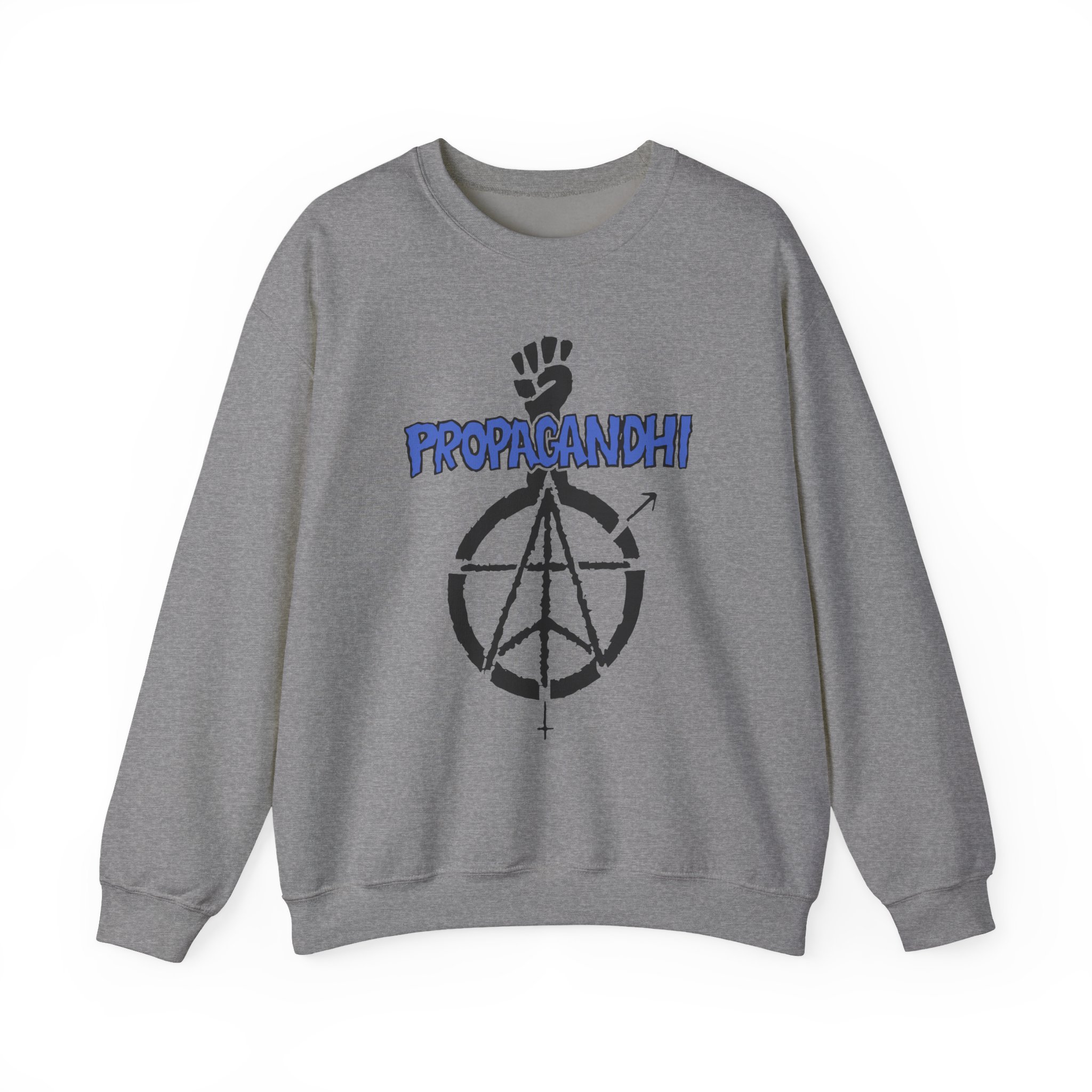 Ideal for any situation, a Propagandhi Fist Logo unisex heavy blend crewneck sweatshirt is pure comfort. These garments are made from polyester and cotton. This combination helps designs come out looking fresh and beautiful. The collar is ribbed knit, so it retains its shape even after washing. There are no itchy side seams on these sweaters.
