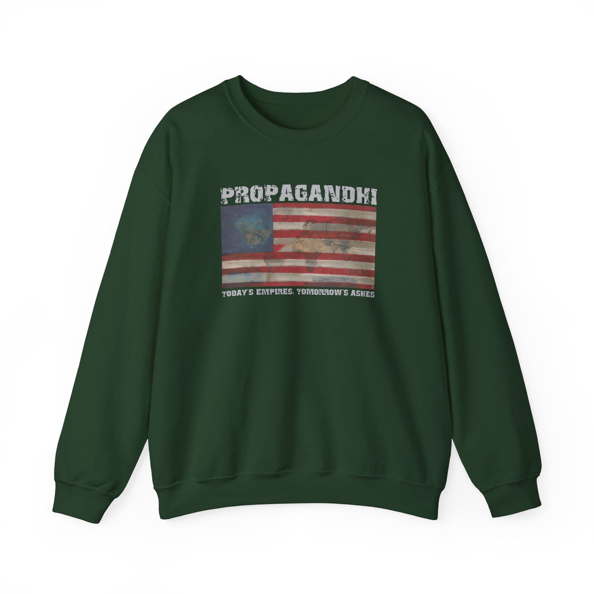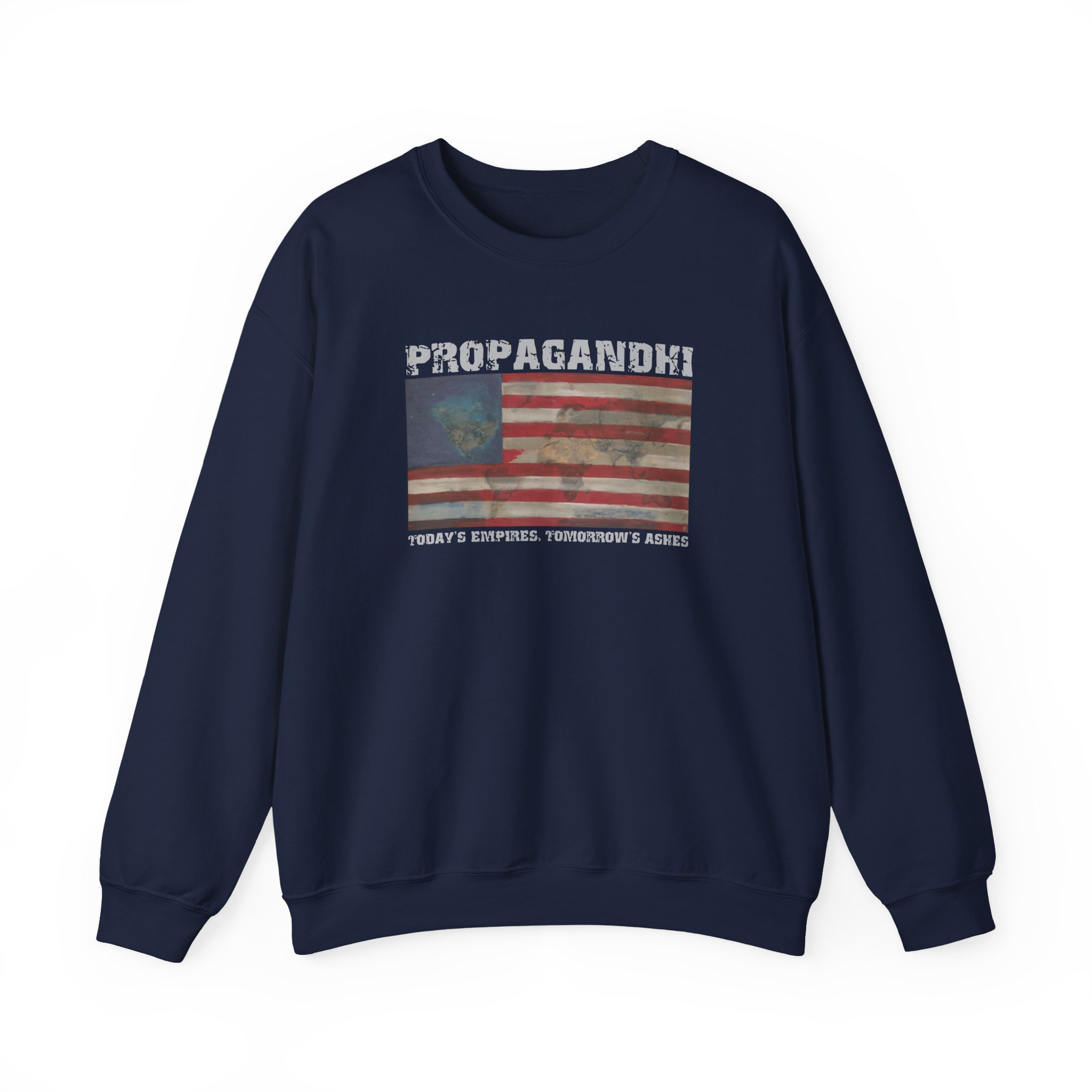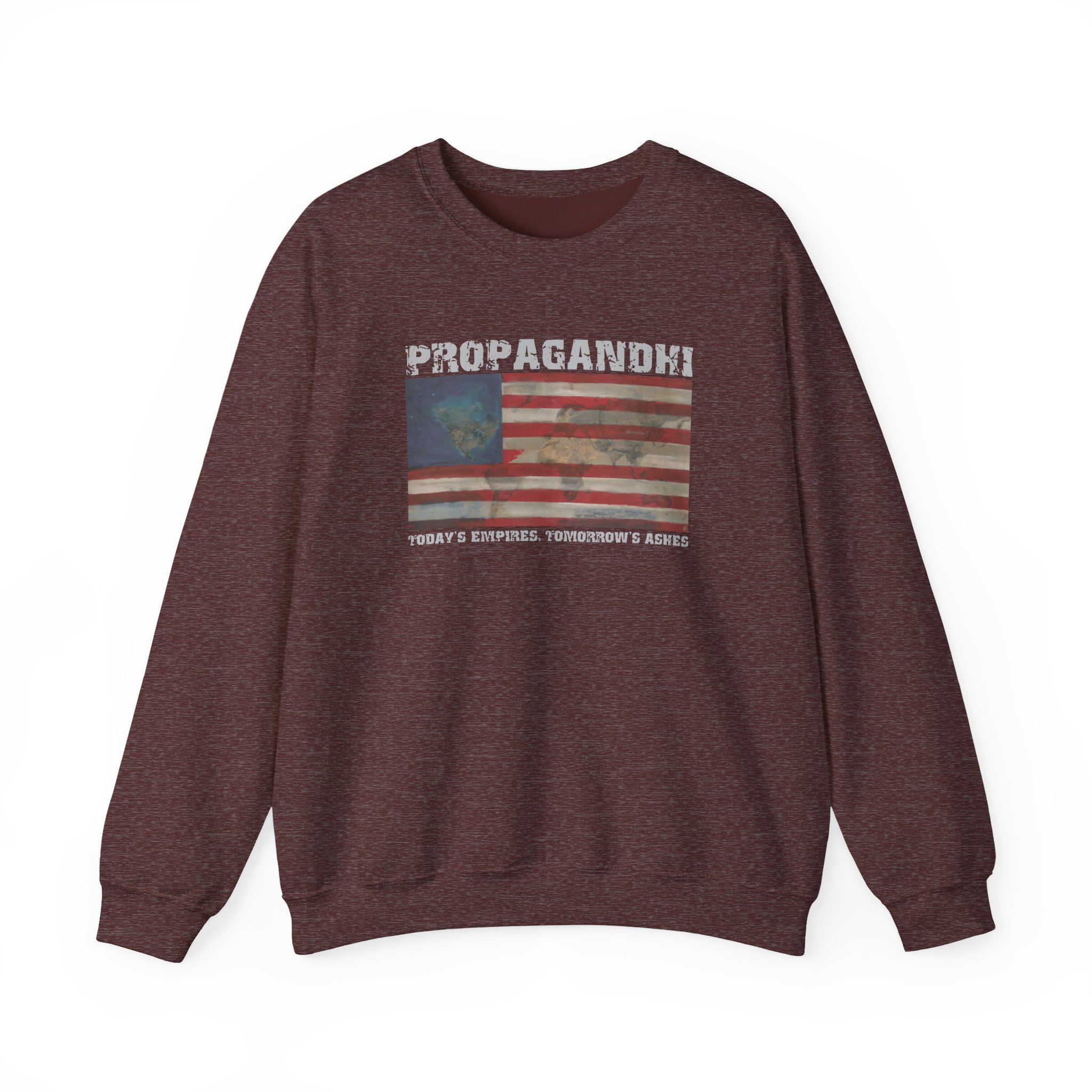 Ideal for any situation, a Propagandhi Today's Empires Tomorrow's Ashes unisex heavy blend crewneck sweatshirt is pure comfort. These garments are made from polyester and cotton. This combination helps designs come out looking fresh and beautiful. The collar is ribbed knit, so it retains its shape even after washing. There are no itchy side seams on these sweaters.