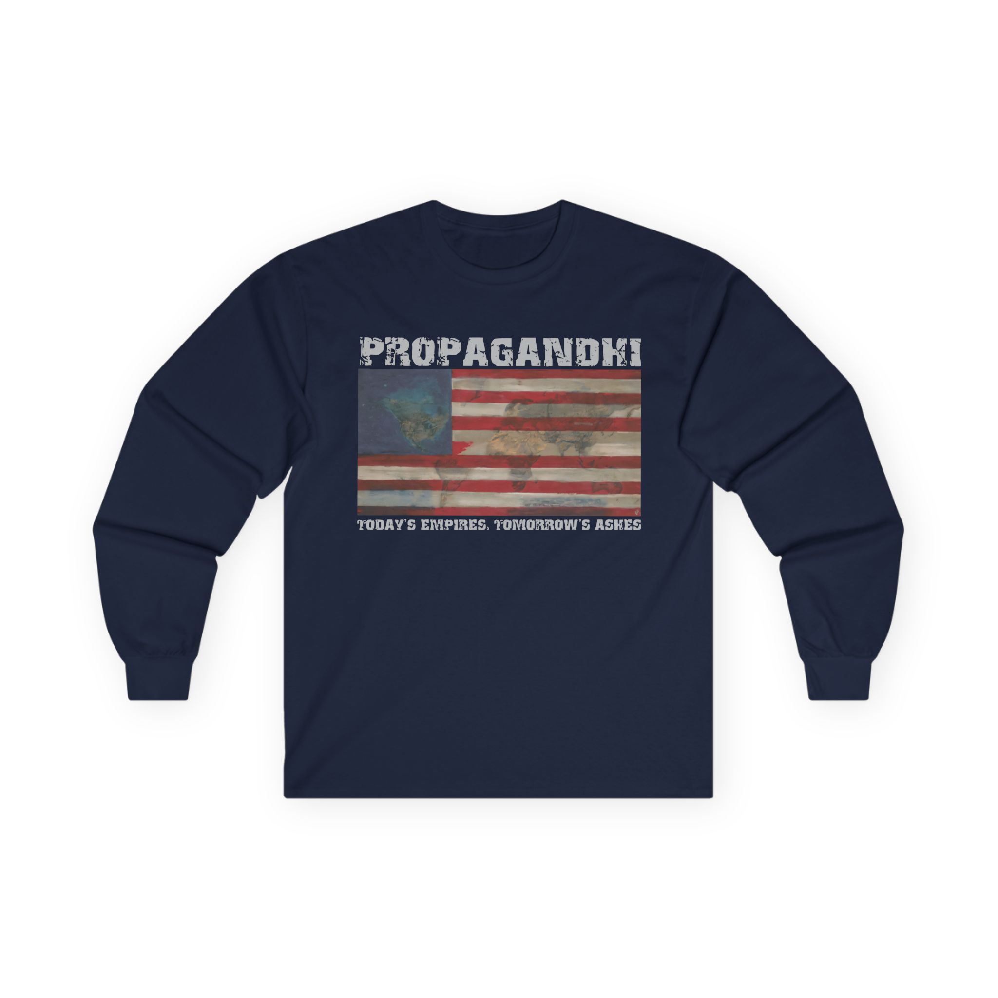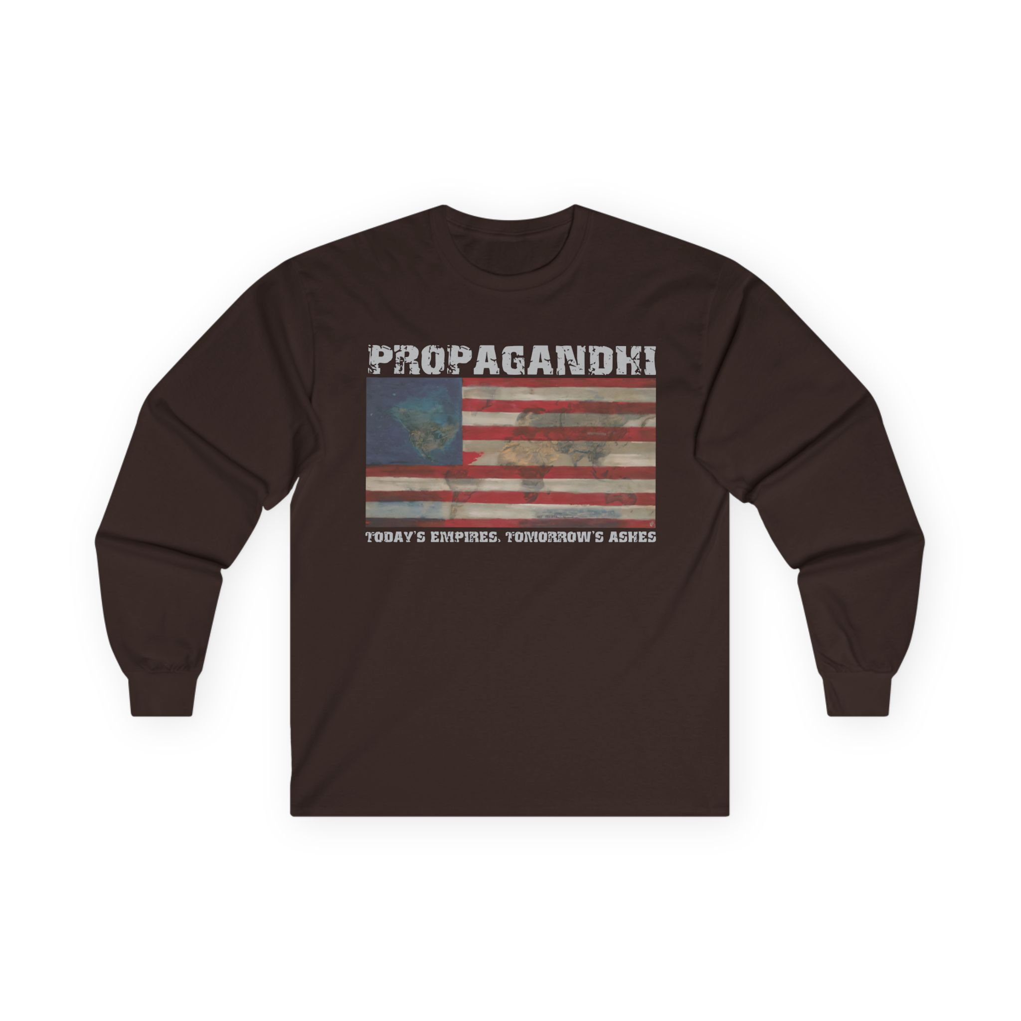 A bit more formal than a standard-issue t-shirt, the Propagandhi Today's Empires Tomorrow's Ashes ultra cotton long sleeve tee is a clear comfort winner. The sleeves also act as a nice frame. There are no side seams. The shoulders are taped for improved durability. This makes for a good fitting around the shoulders and neck. The cotton used for these shirts is environmentally friendly.