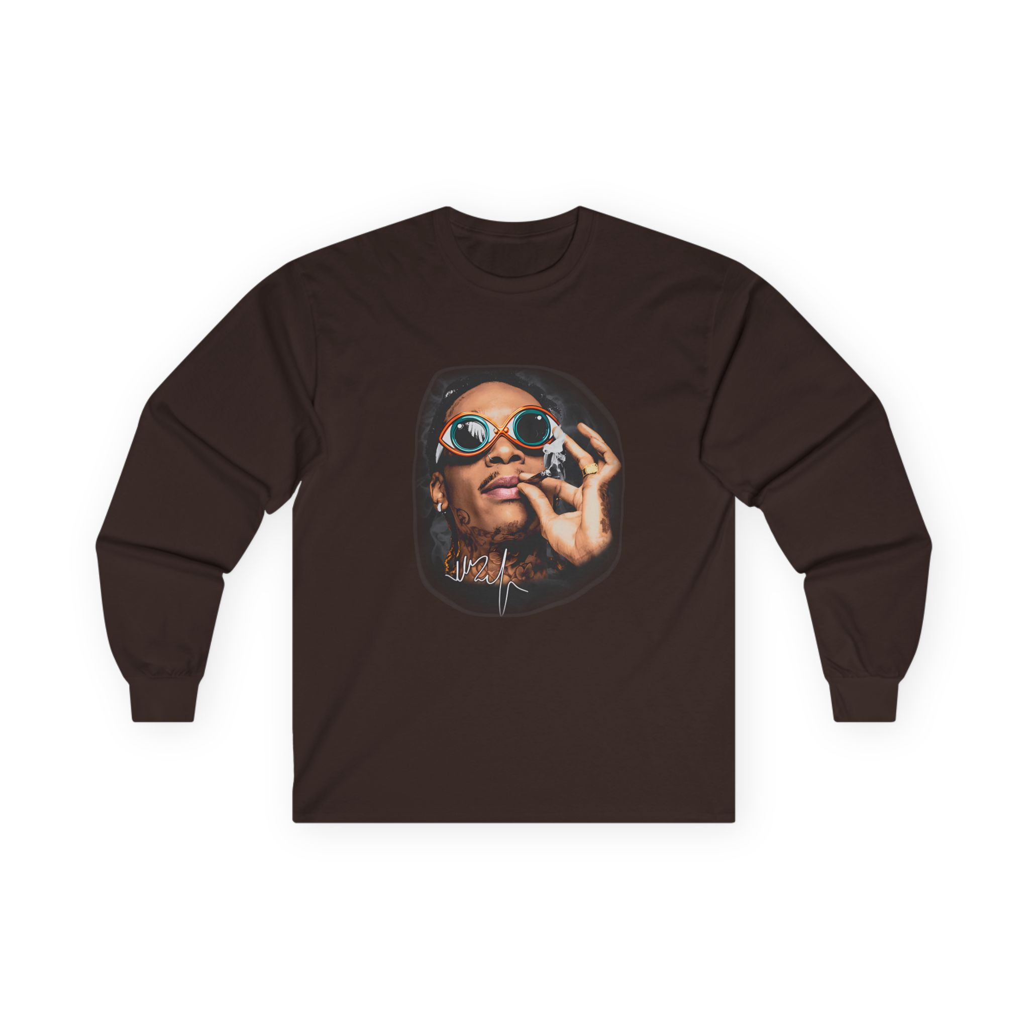 A bit more formal than a standard-issue t-shirt, the Wiz Khalifa Og ultra cotton long sleeve tee is a clear comfort winner. The sleeves also act as a nice frame. There are no side seams. The shoulders are taped for improved durability. This makes for a good fitting around the shoulders and neck. The cotton used for these shirts is environmentally friendly.
